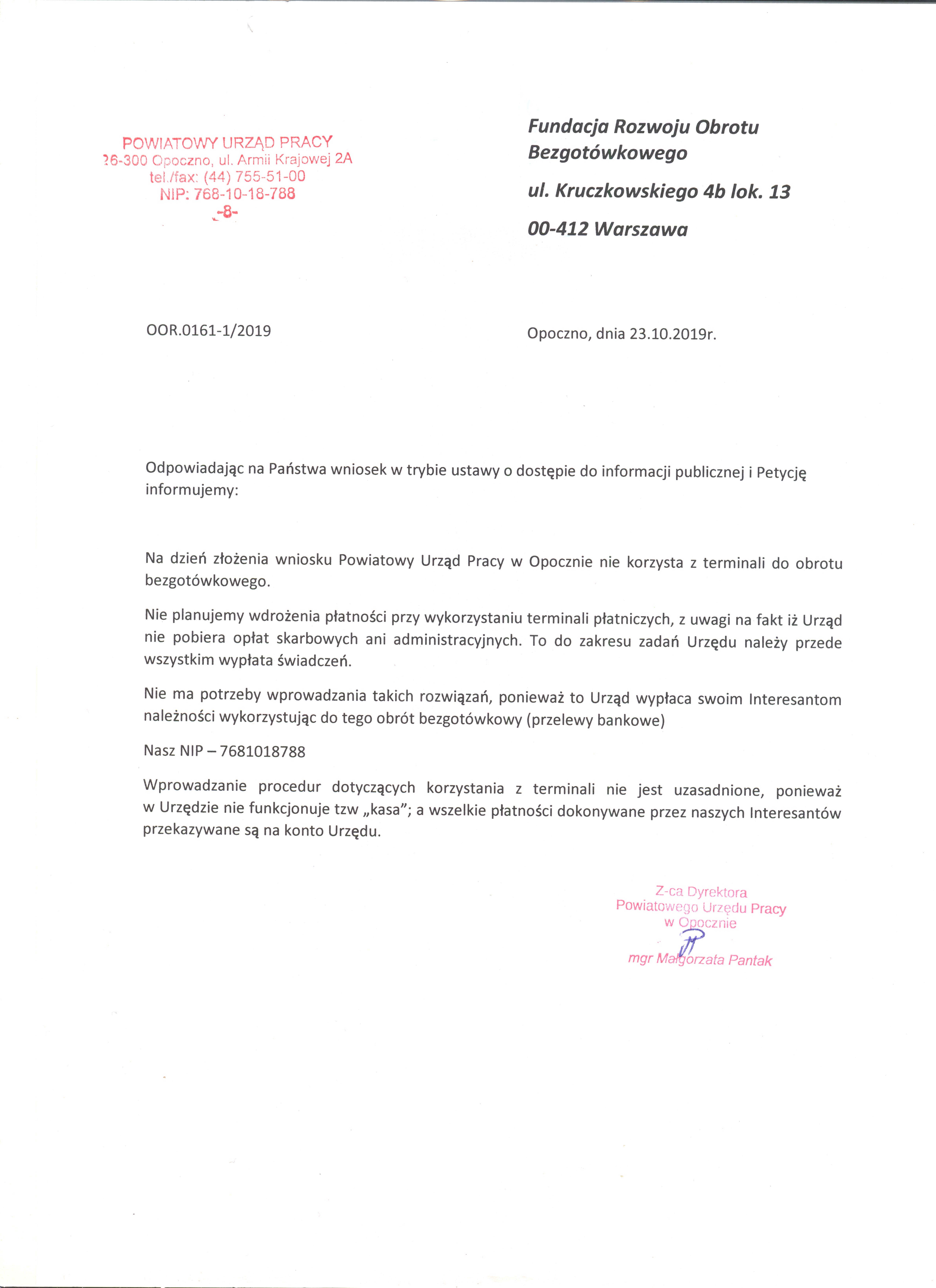 Dokonanie analizy - możliwości wdrożenia procedur związanych z pełnym zabezpieczeniem potrzeb Interesantów - dotyczy płatności bezgotówkowych
